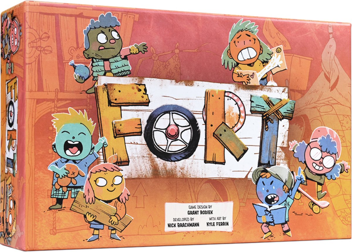 Fort is een kaartspel voor 2 tot 4 spelers over het bouwen van forten en het volgen van vrienden.In Fort ben je een kind! En zoals veel kinderen, wil je je vriendenkring laten groeien, pizza en speelgoed verzamelen, en het coolste fort bouwen.Door deze coole dingen te doen, scoor je overwinningspunten, en aan het eind van het spel wint de speler met de meeste overwinningspunten! Met je kaarten kun je niet alleen in je eigen beurt acties ondernemen, maar kun je ook de acties van de andere spelers in hun beurt volgen. Ga je je aan je eigen posse wijden, of kopieer je wat de andere kinderen aan het doen zijn?Maar wees voorzichtig, want als je de kaarten niet echt gebruikt, kan het zijn dat je zorgvuldig geconstrueerde deck verloren gaat. Immers, als je niet met je vrienden speelt, waarom zouden ze dan nog met je rondhangen?